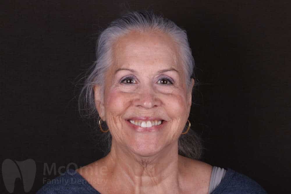 After beautiful clean ceramic crowns with non-metal restorations were placed her smile has been restored! Dr. McOmie and his team are so grateful for the opportunity to help her feel young and beautiful again! [gallery type=”slideshow” link=”none” size=”large”