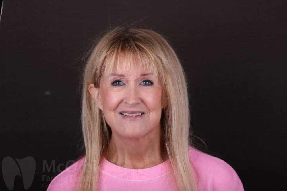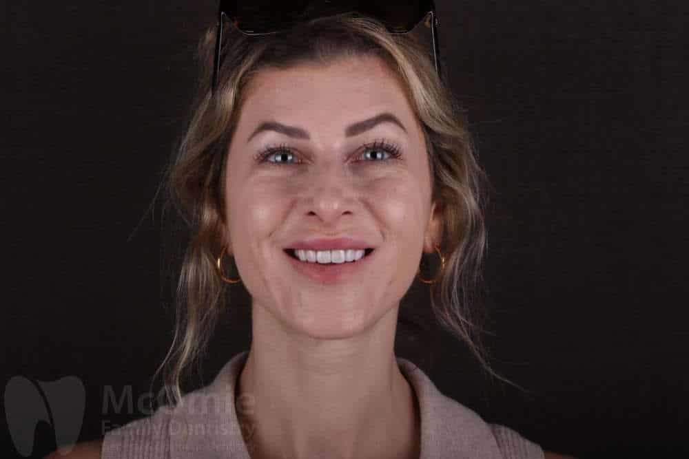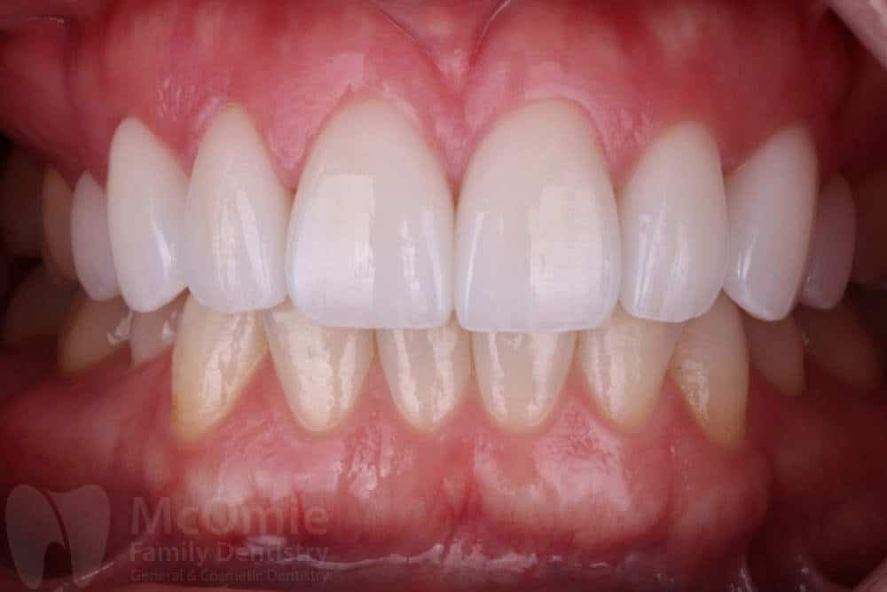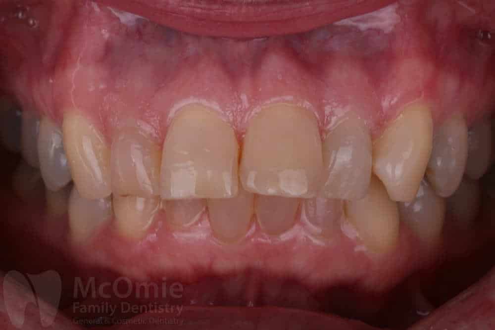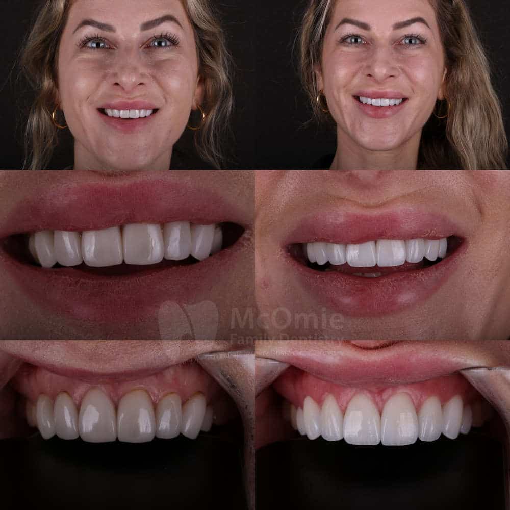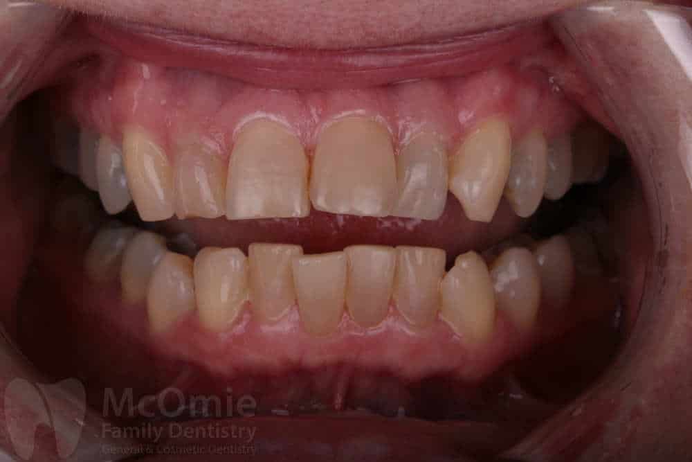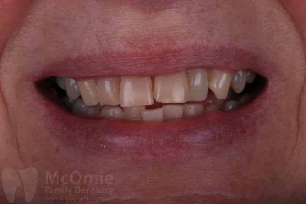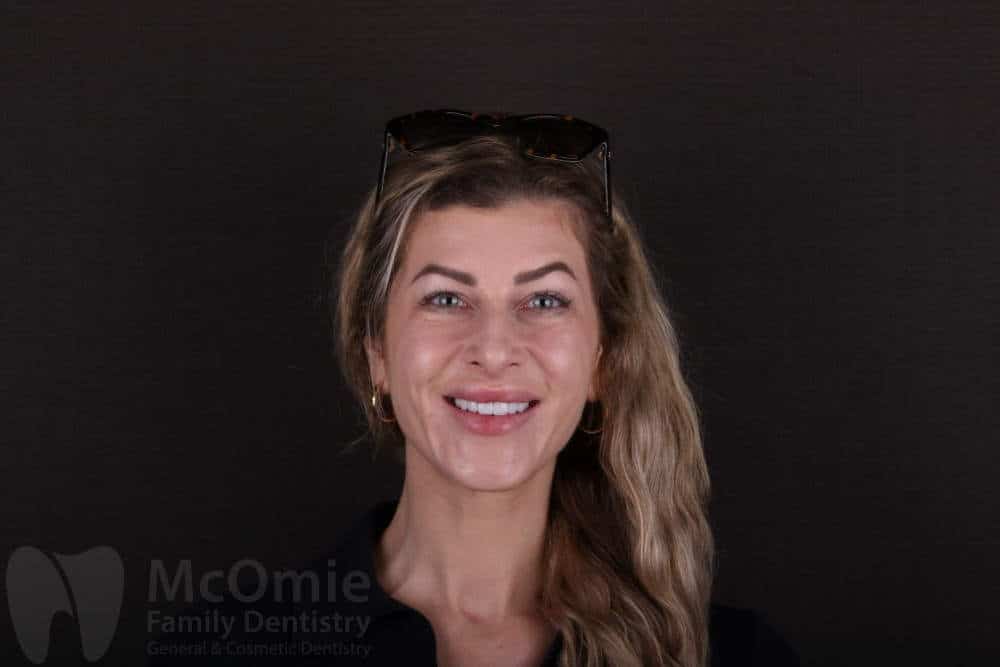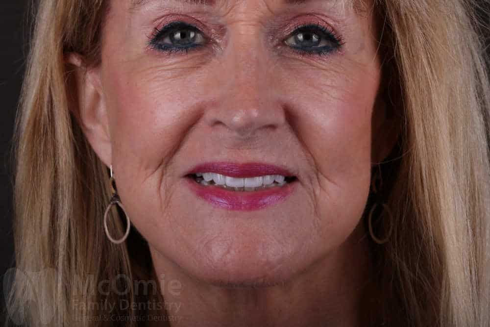 Before this patients’ teeth were of different shapes and sizes. Dr. McOmie and our team were able to give her a new, even, and symmetrical smile.