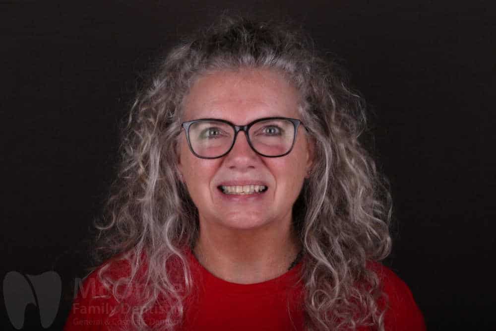 A wonderful case Dr. Mark McOmie did. These old veneers needed to be updated. Her smile tells the story. The old veneers are not as durable as the new materials we use. These veneers probably date back to the ’90s. Now she has a smile to be proud of.