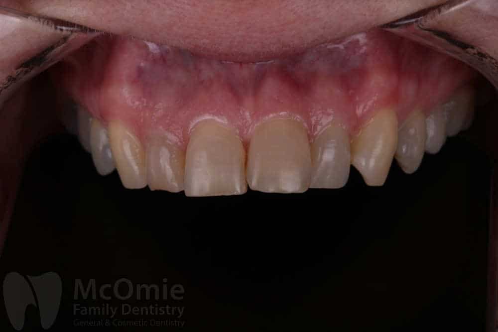 This patient was dealing with tetracycline yellow stains and darkening of the teeth caused by antibiotics given to her when she was a child. Dr. McOmie restored this patient’s smile with gorgeous veneers giving her back a long-lasting, youthful smile she can be proud of showing off.