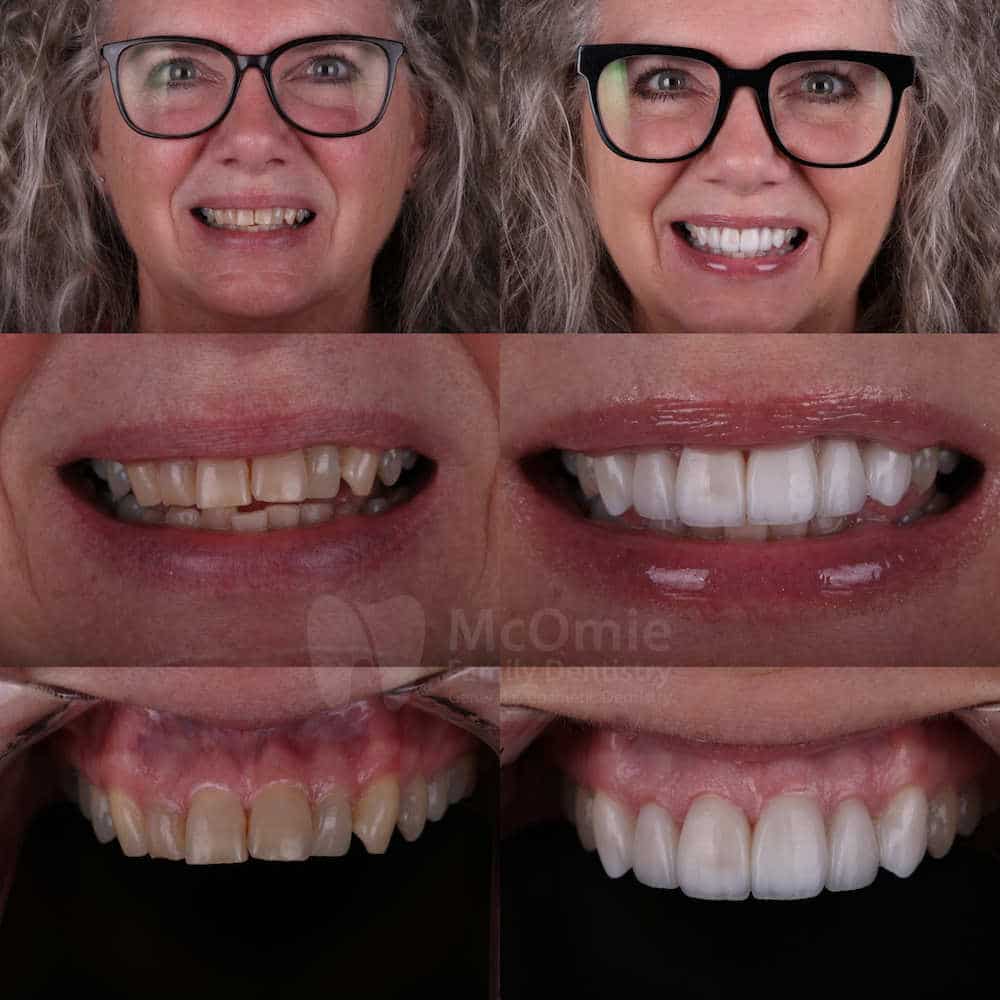 A recent case that Dr. McOmie completed. Her smile makeover utilized eight veneers, giving her a new full white smile. She is a wonderful person who deserves to have a wonderful smile.