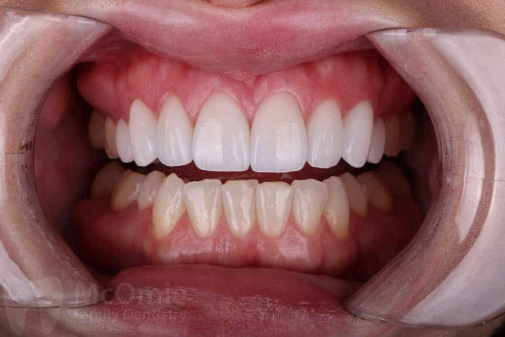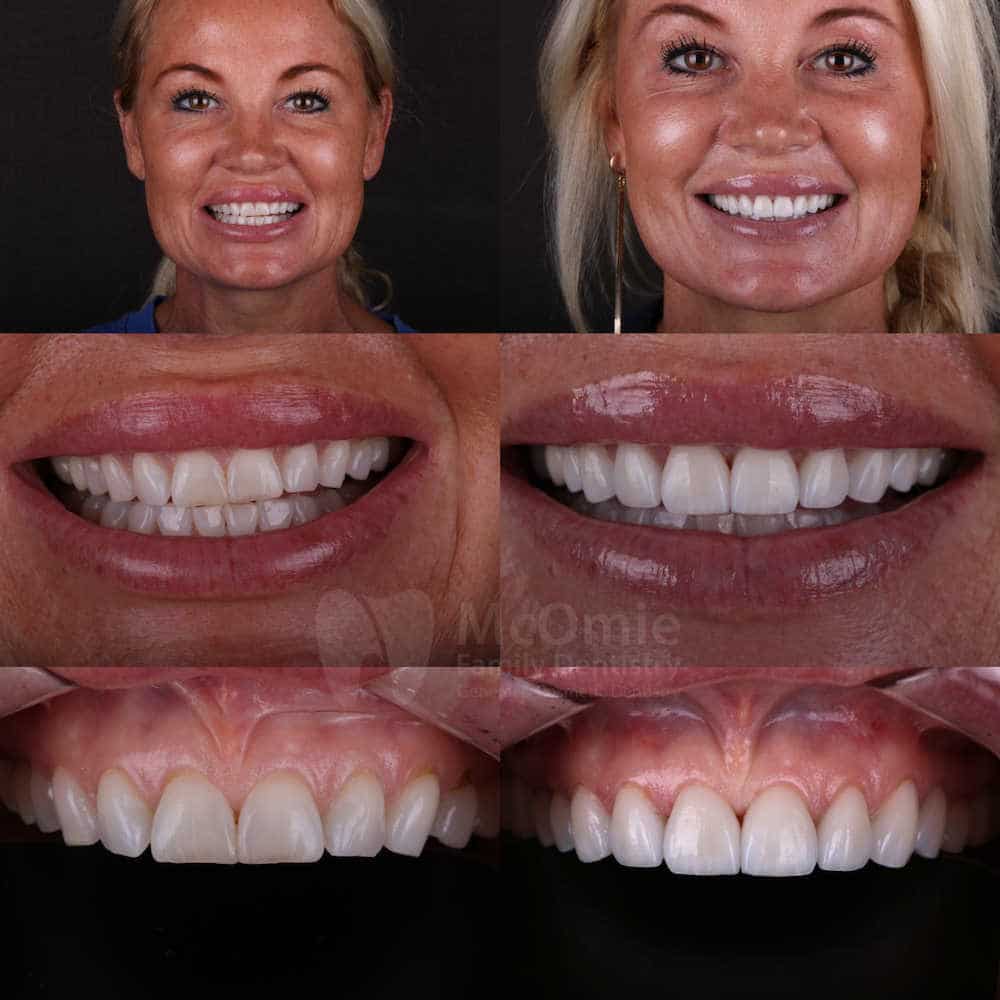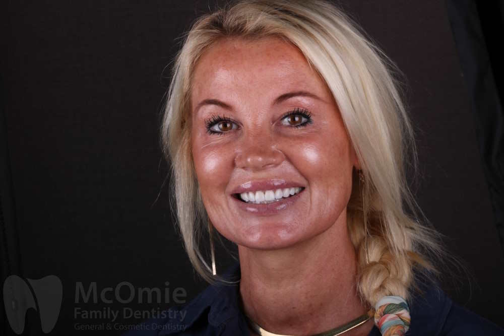 Born with small teeth lead to gaps. She wanted a great smile so she came to McOmie Family Dentistry. Dr. Mark McOmie was able to help her get a celebrity smile. We thank her for allowing us to share her before and after photos with you. We love what we do.