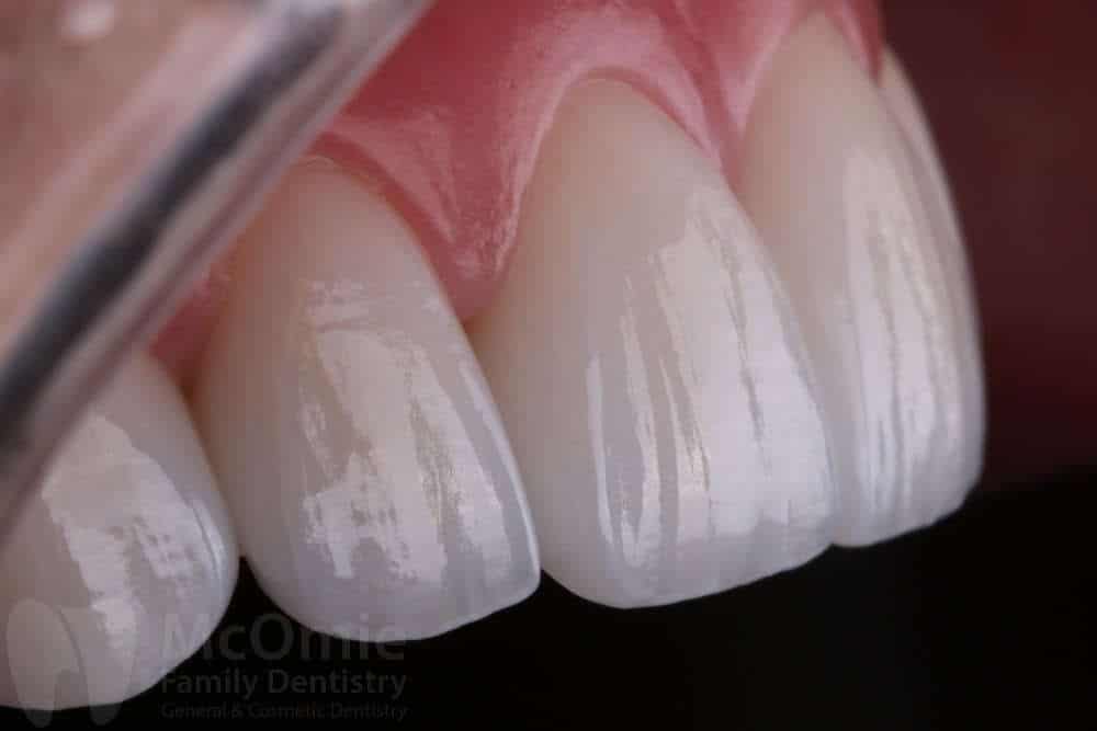 This patient came to see Dr. McOmie seeking help for the old composite restoration that was misaligned and yellowing that she had done to her teeth when she was a teenager. Dr. McOmie was able to restore her smile with porcelain veneers that filled the gaps between her teeth and gave her teeth a naturally white look, giving her a new complete and bright smile that shot her confidence through the roof.