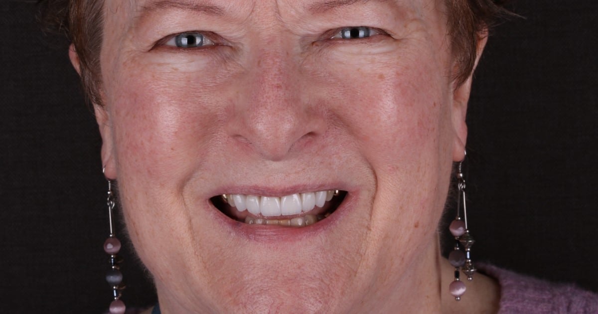 This patient wanted a brighter, more polished smile that still looked natural. With six custom veneers, her front teeth now look more balanced in color, shape, and symmetry, giving her a clean, confident smile.